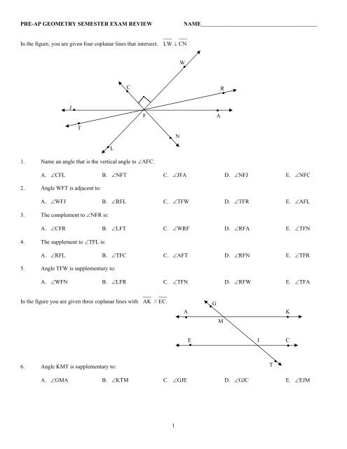 Geometry Semester 1 Final Review Youtube
